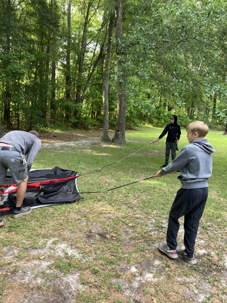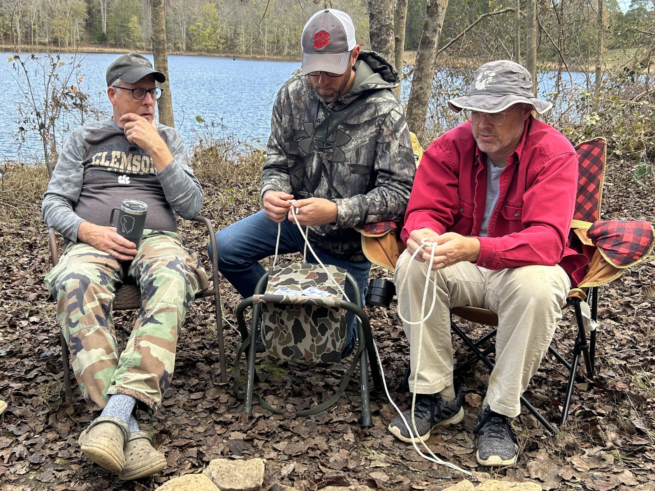 A CHOSN campout requires two men as an instructor team who can share the two duties of teaching outdoor skills and leading Bible discussions.  Usually, one guy feels more adequate at doing one part over the other, which works well.  Ideally though, each man eventually learns to lead either element, the outdoor skill part as well as the spiritual discussion part.  Splitting duties, though, between the outdoor guy and the Bible guy can be good “man sharpening man” time until both men feel competent in both elements.